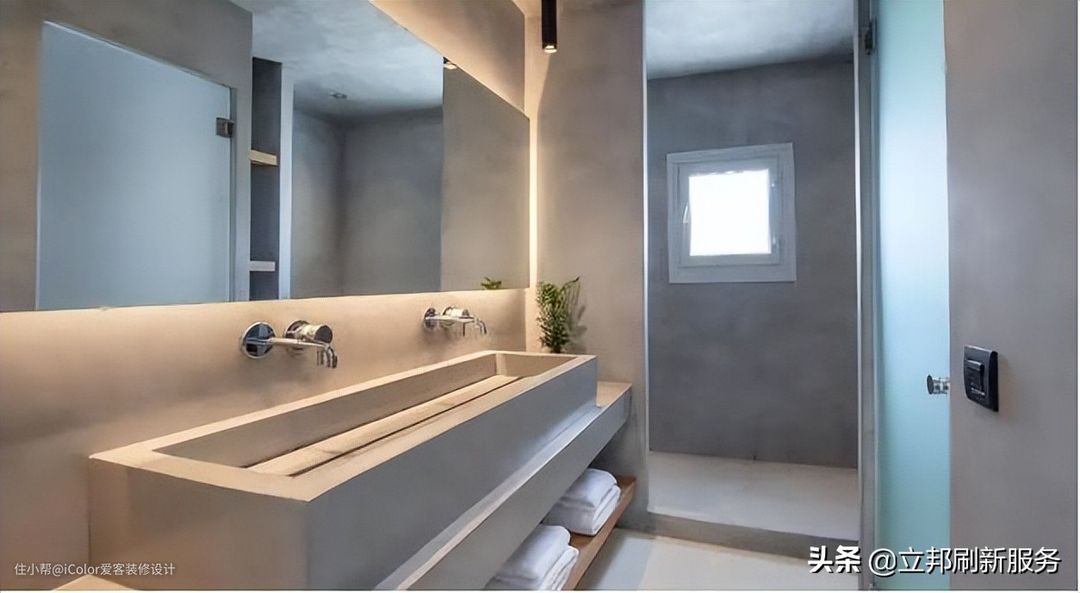 比方说微水泥,是适合用在卫生间的一种艺术涂料,因为它无缝,而且具有防水下好,可以墙地合一,妥妥提高卫生间的颜值!