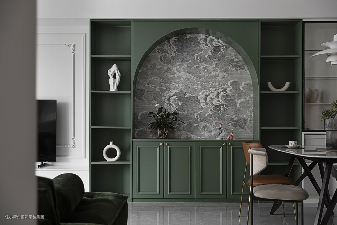 小面积跳色的运用功能在于活跃空间的氛围,增加亮点,因此小而精的区块中才能发挥其色彩优势,增加视觉的中心点。