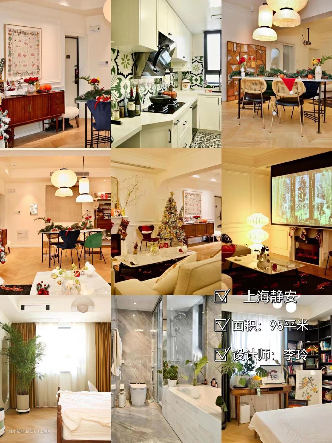位于上海市静安区95平米的房子,房间整体采用暖色系的灯光,搭配乳色墙面与木色地板,让整个房间变得柔和,浅白色和实木家具的搭配,加入了法式的风格。