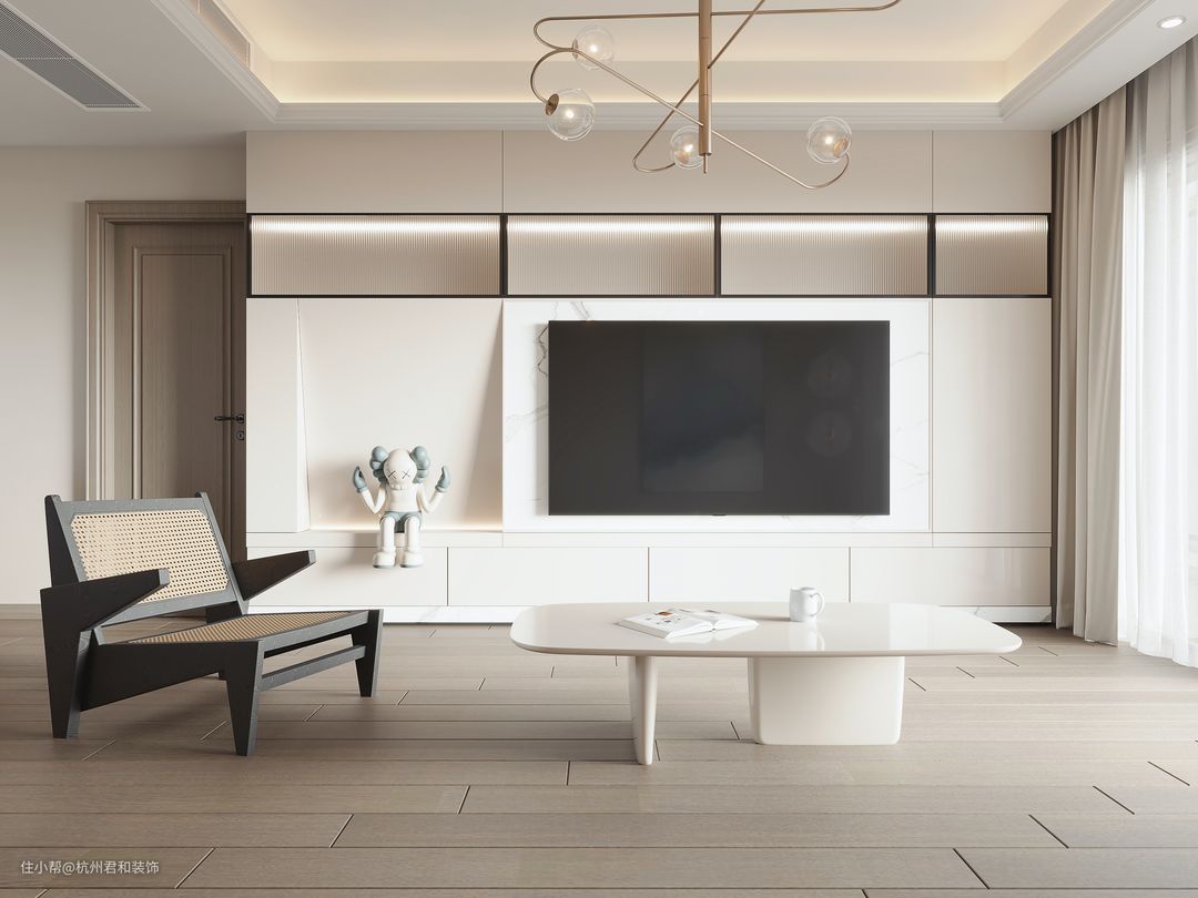 整体空间以米色为主,空间的纯粹干净基于大面积的浅色,用互补的蓝色橙色平衡空间色彩,色彩更加丰富多元,为沉闷的气氛带来活力,让整体空间更时尚、精致,提高了层次感。