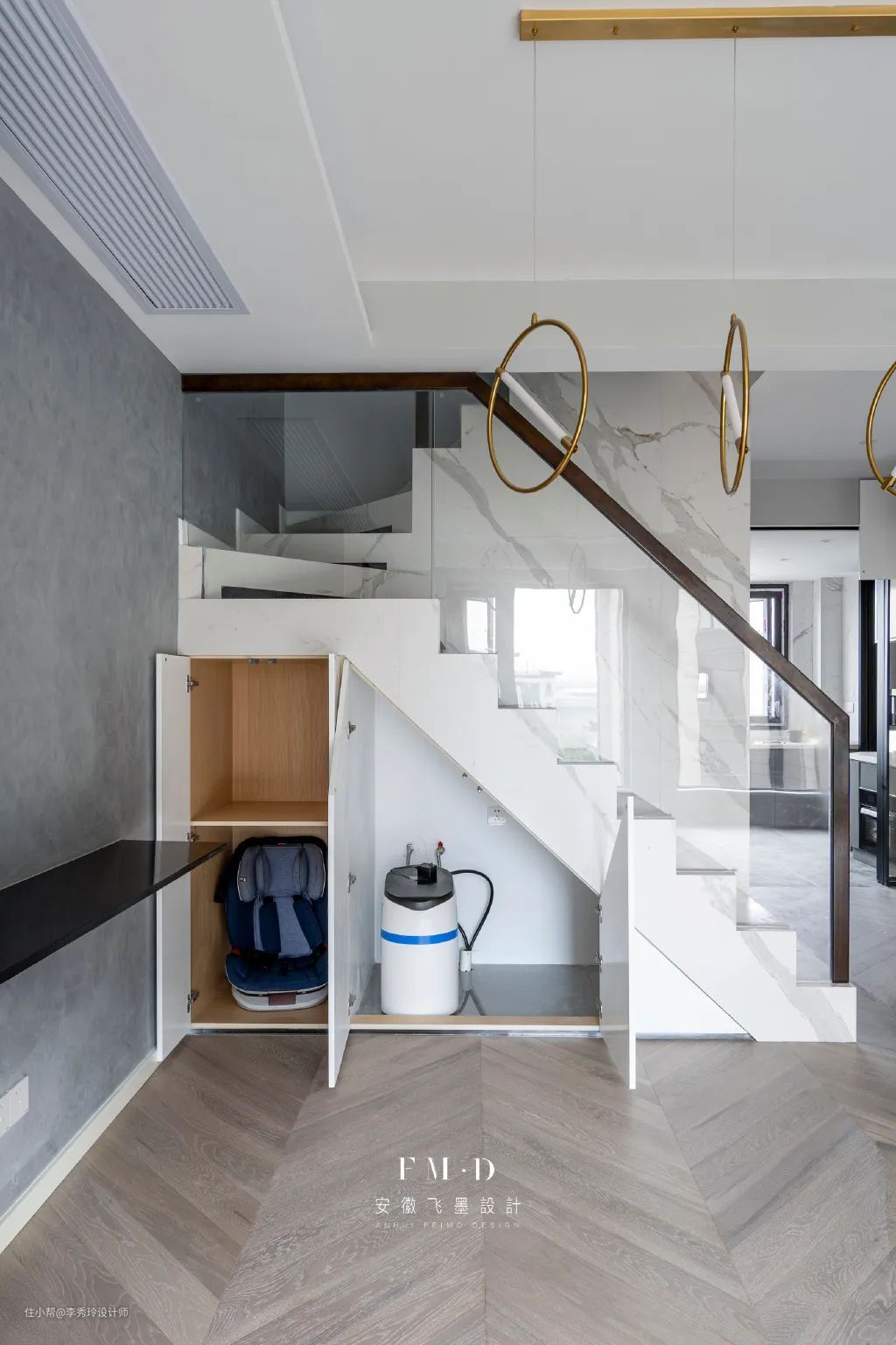 位于【望湖城】的这家顶复住宅,楼梯是现浇的,底下的空间就用作储物间。