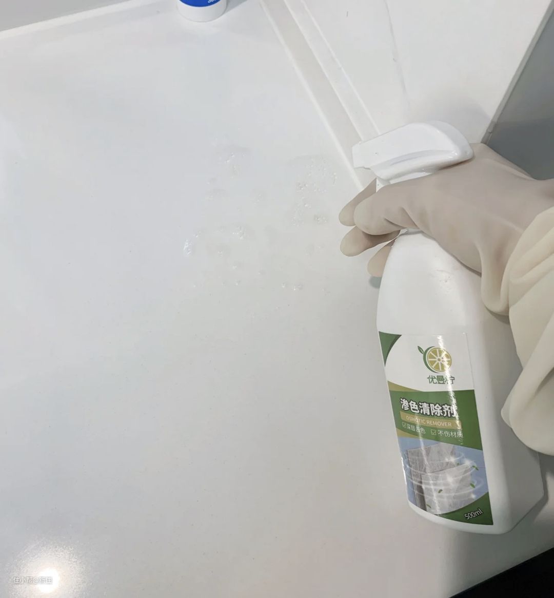 包括家里的石英石渗色,也可用相同的方法去除。