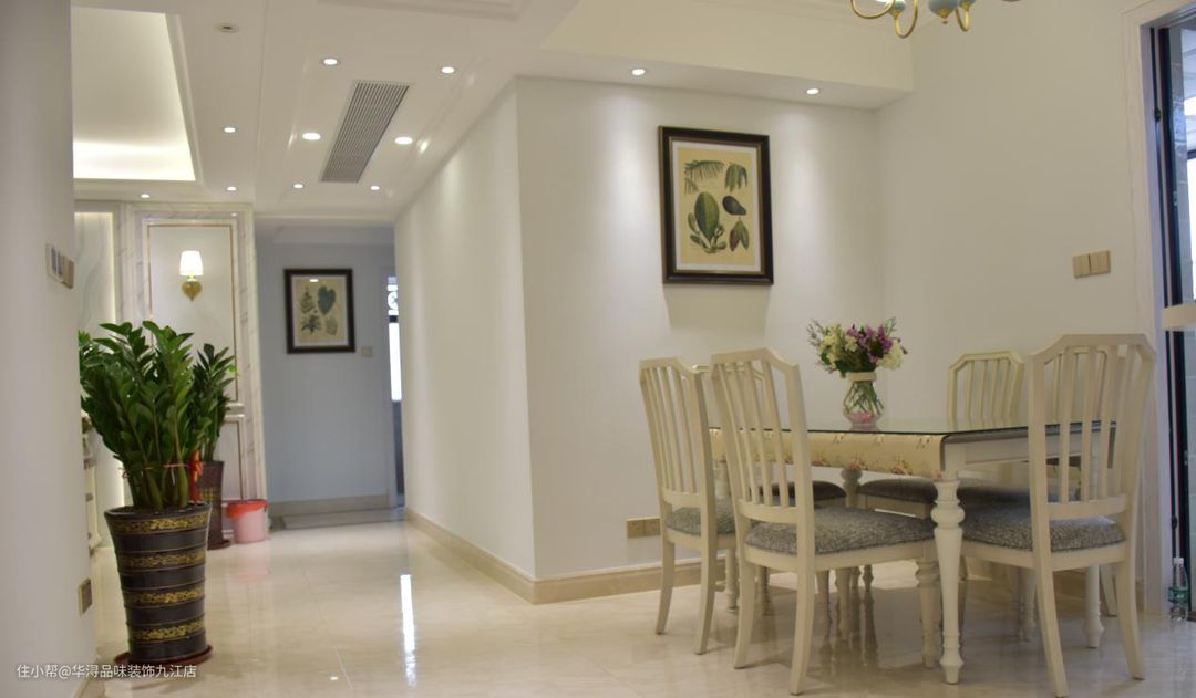 餐厅选用了一套白色的美式餐桌椅,尺寸宽大的美式餐桌椅使用起来更加舒适,传递出自由、轻松的气息。