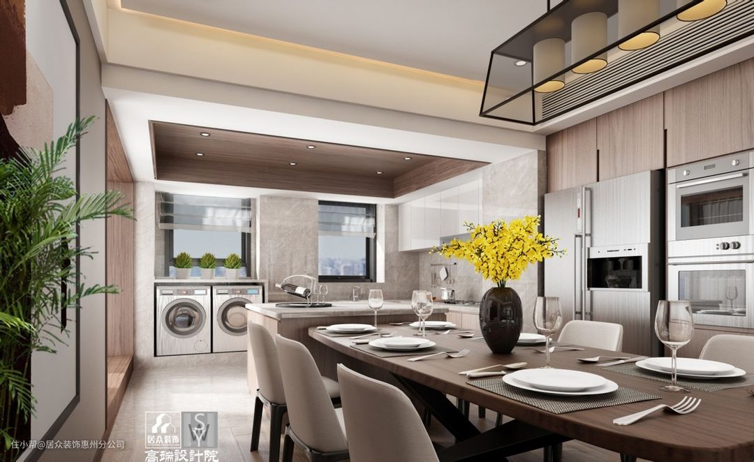 厨房需要收纳的物品非常多,会定制橱柜,滚筒洗衣机可以顺势嵌入其中。也因为厨房本身所需的收纳空间很大,是否还有空间安装洗衣机,就要具体情况具体分析了。以及油烟造成的清洁问题,都需要衡量利弊。