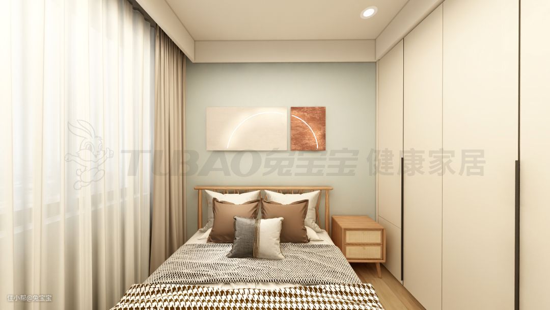 卧室的床头背景墙都有被好好利用,转角空间告别常见的床头柜样式,将其设计为悬浮式,增添此空间的美学平衡感,也方便日常清洁。