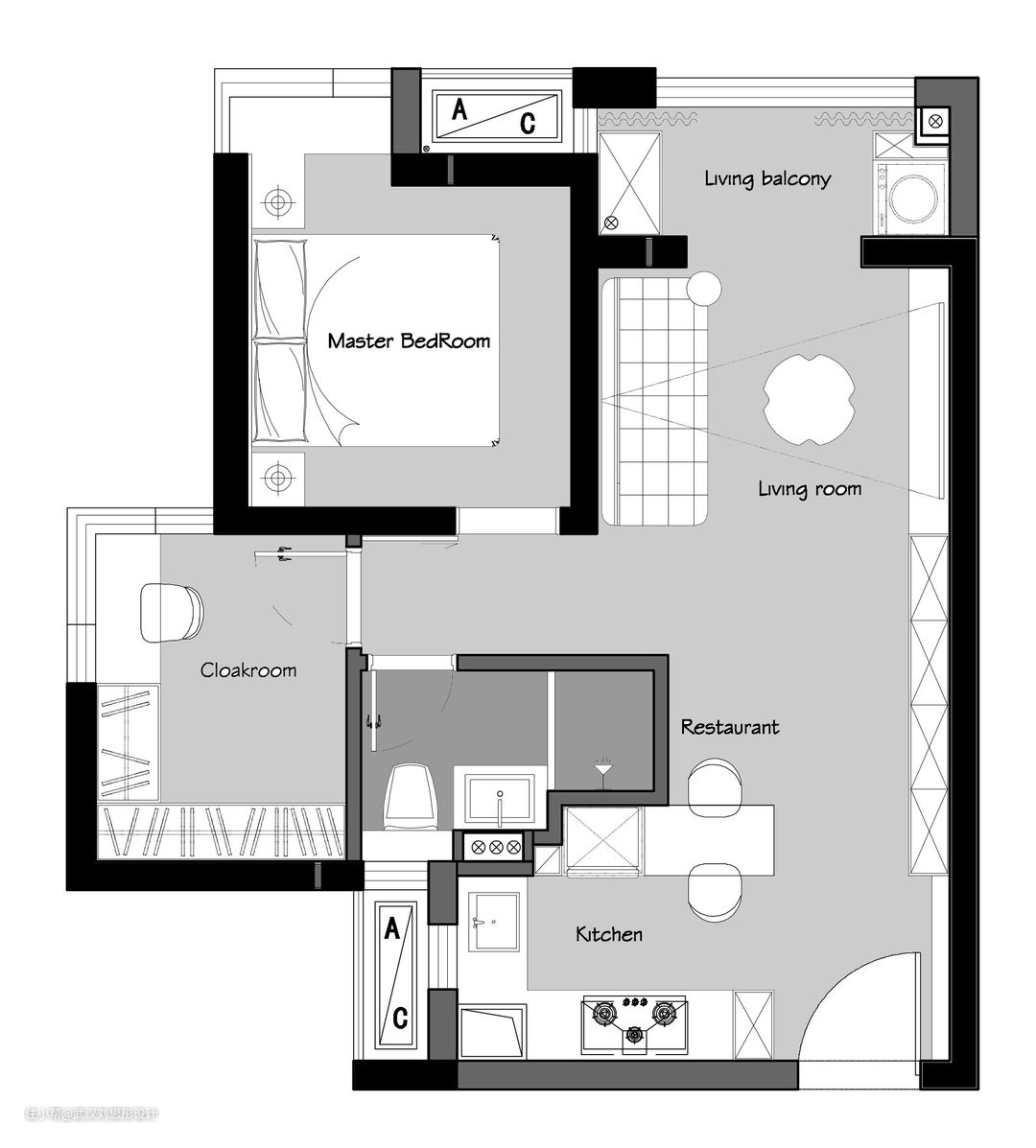 - 户型改造能在布局上放大空间,利用采光,材质和色彩,继续放大空间!
