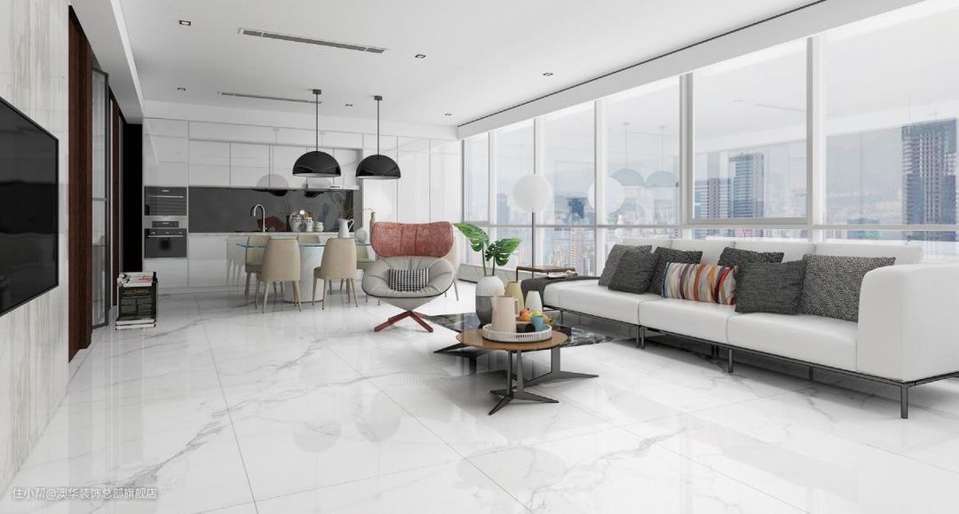 通常来说,如果客厅的面积超过30平米,一般建议选择800*800的瓷砖。倘若客厅是长条形的,可以尝试600*1米2的瓷砖。如果是个大平层,可以尝试选择700*1米5的瓷砖,它有非常好的延展性,视觉效果更好。