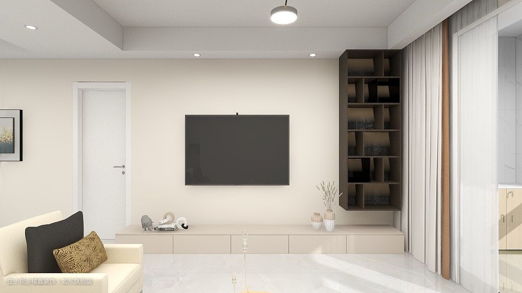 【客厅】客厅是视觉焦点,自阳台涌入的光线下,大面积的淡黄色与奶白色带来了温馨与安逸。无主灯设计、开放格收纳营造了简约感。