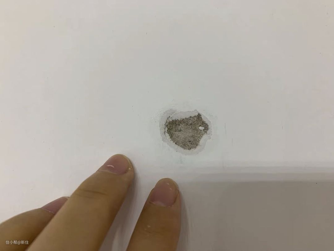人为的破损则是螺丝留下的孔洞,阳角的磕碰等问题,由于面积比较小,修复方法简单,为了整体美观性,还是修补一下。