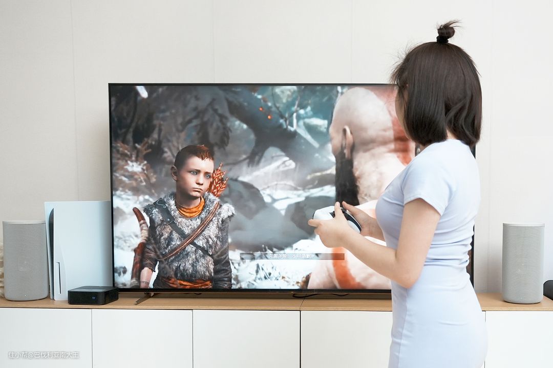索尼全家桶绝对是完美体验《战神》的正确打开方式,首先电视画面色彩惊艳,其次儿子和奎爷的对话,从房间不同位置发出来,形成人物和声音的分离,大大提升了游戏的真实感。