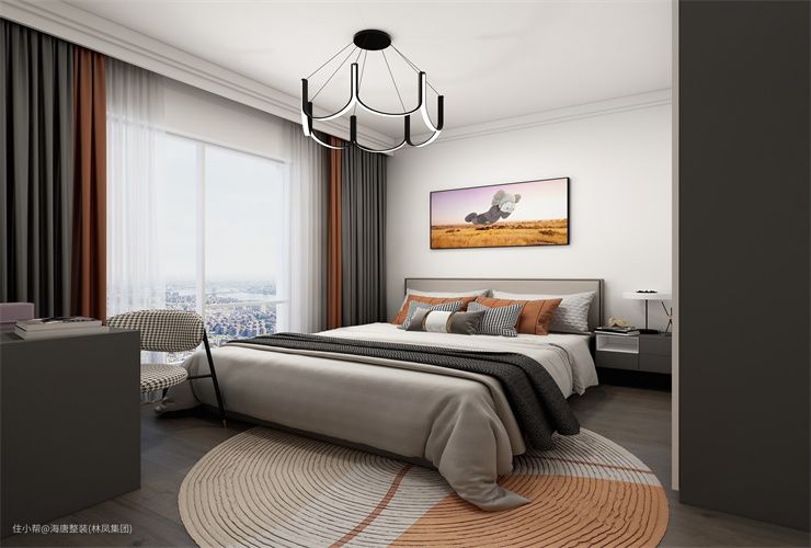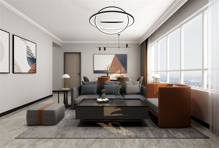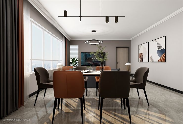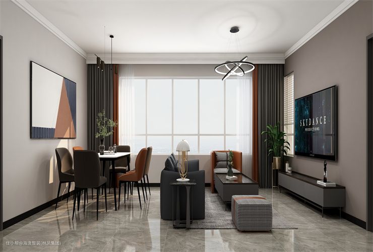 主要以简约,时尚,耐用的需求围绕着设计。客厅浅灰色地砖将总体餐厅客厅厨房连贯效果,感觉整体有延展性,显得空间大气通透,背景墙做的壁纸的铺贴,看着简单且耐看。
