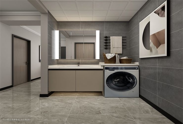 卫生间做的干湿分离,方便操作,干区做的浴室柜和洗衣机相结合的设计,使操作台的利用空间更大。