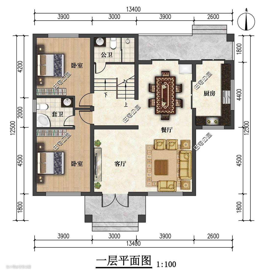 多朝南卧室+6.9米客厅,13×12米三层简欧,40平娱乐室十人九慕