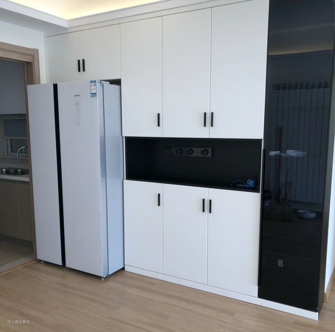 一直以为,我家的把冰箱嵌入柜子里,就是嵌入式冰箱了,直到去朋友家看了后,才被啪啪打脸,了解到什么才是真正的嵌入式。