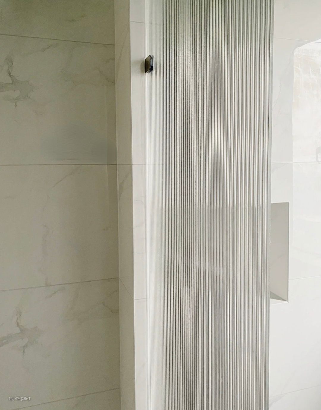 如果计划后期装玻璃隔断,最好提前让瓦工预留好凹槽位,玻璃直接插入就行,清洁起来也没有卫生死角。