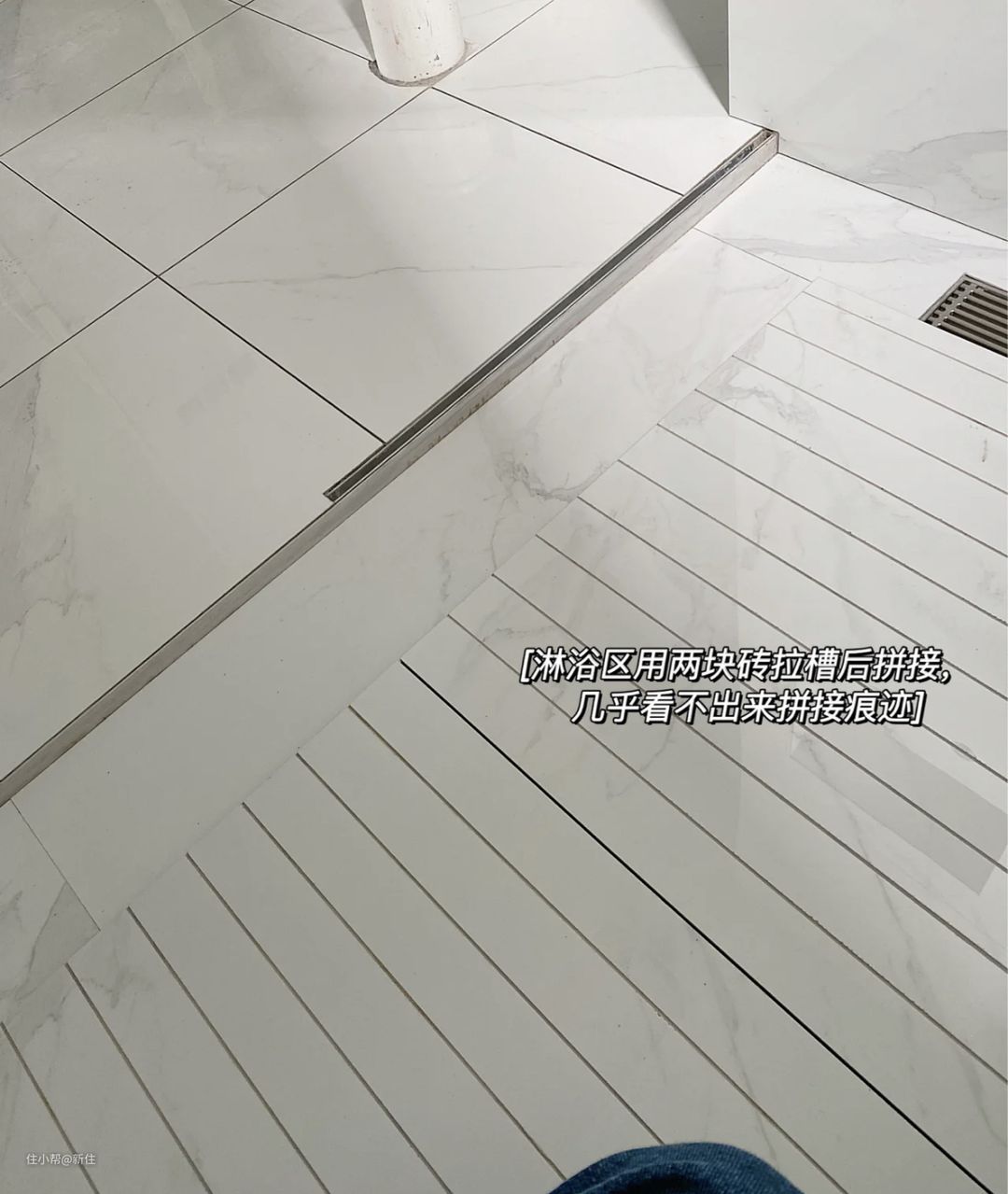 不过这里也提醒大家,做拉槽用瓷砖的话,尽量不选亮光砖,防滑性略差,柔光的会好一些,还有拉槽是要返厂做的哦,定砖时就跟商家说好,省得后期麻烦。