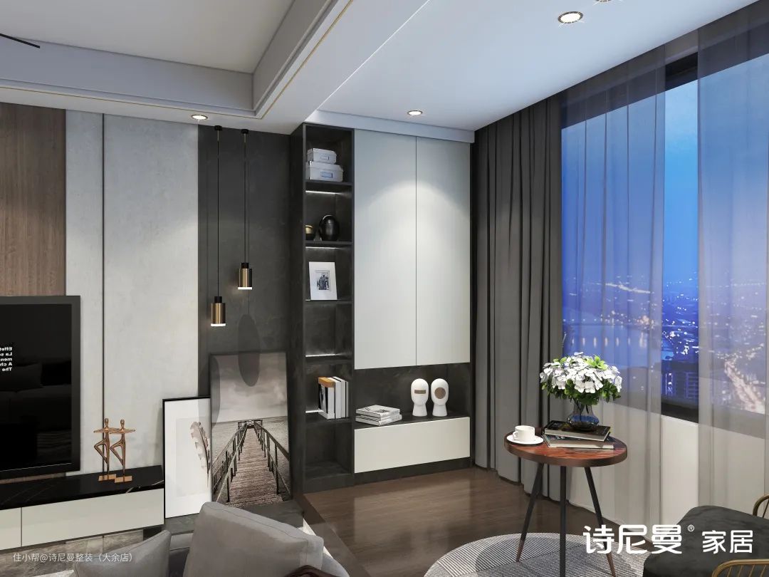 这样搭配了开放展示格的储物柜不乏时尚感。