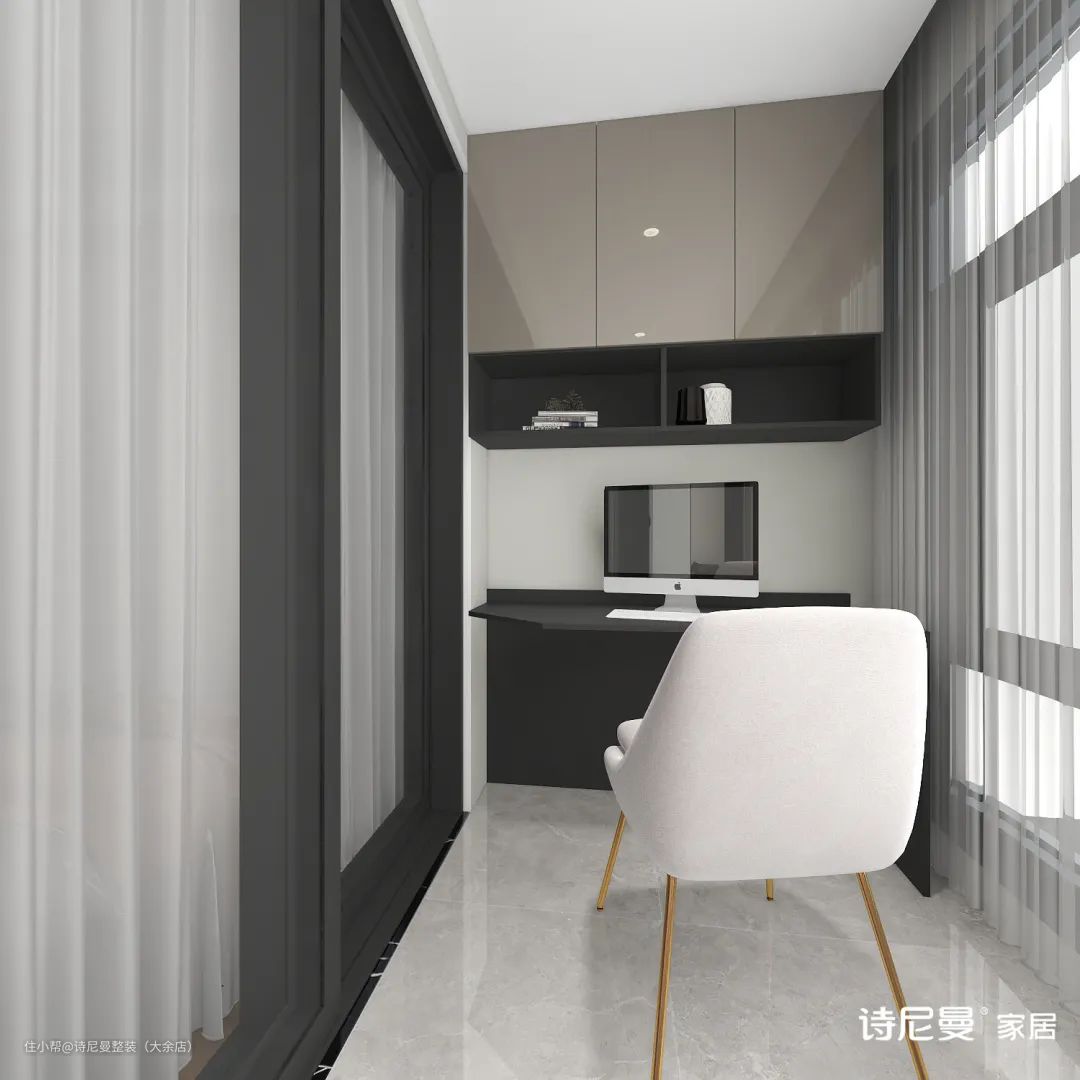 把书房搬进了阳台,省出一间房。