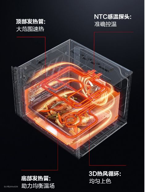 为什么要选择上下管加热,作为一个烘焙爱好者,可以很明显的感受到其中的区别,如果只有上部加热管的话,很可能出现食物底部还没有熟,上面靠近加热管的位置已经焦了。