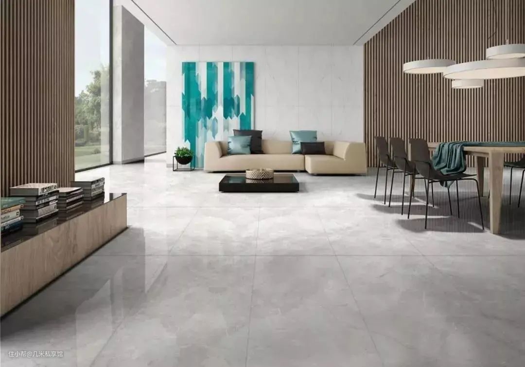 900×1800㎜的瓷砖非常适合用于大宅的地面通铺,特别是连纹、密缝等工艺诞生之后,这种大板铺可以贴出天然石材的效果。