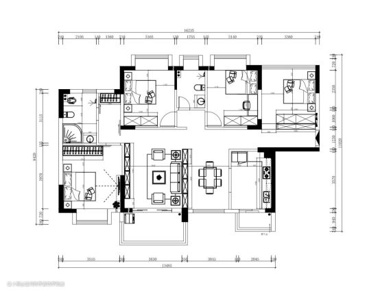 户型面积:4房2卫 150㎡