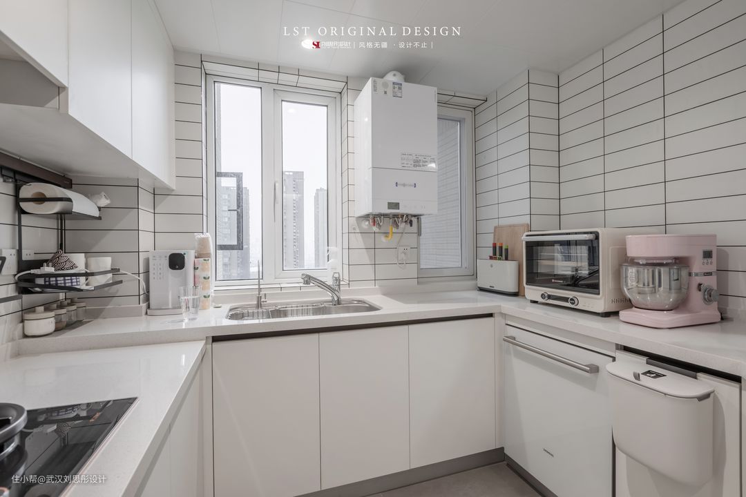 🔶干区和厨房同样通铺800*800mm浅灰色柔光砖,无过门石,整体性更强。