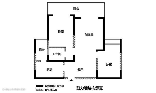 剪力墙钢筋混凝土部分是承重墙,这种墙体是不能拆除的,其它的墙体则是可以拆改的。在建筑结构图里,黑色填充的墙体部分就是承重墙,其它都是非承重结构。