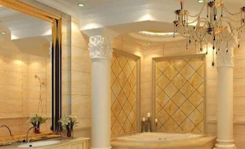3.墙地面用亮色系列,让人眼前一亮。暖黄色是比较常见用在卫生间的颜色,能瞬间打造出富豪的既视感。当然,摒弃欧式装修在装修上更加简化会没有那么夸张,更适合一般家庭。