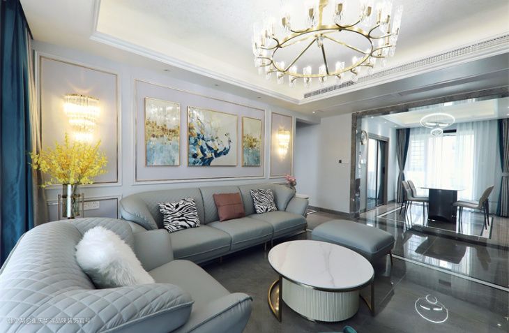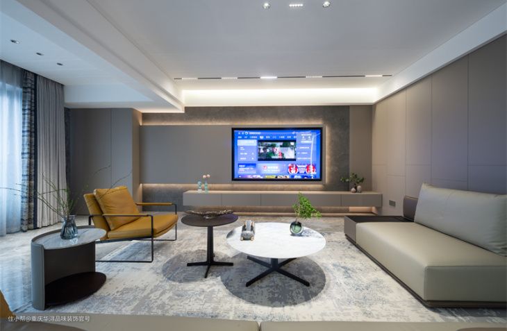 双眼皮吊顶结合了吊顶与石膏线的优点,可以进行局部吊顶与局部双眼皮组合搭配,双眼皮吊顶只需要石膏板做错层处理,施工工艺简单,造价更低,呈现的整体空间效果统一大气。