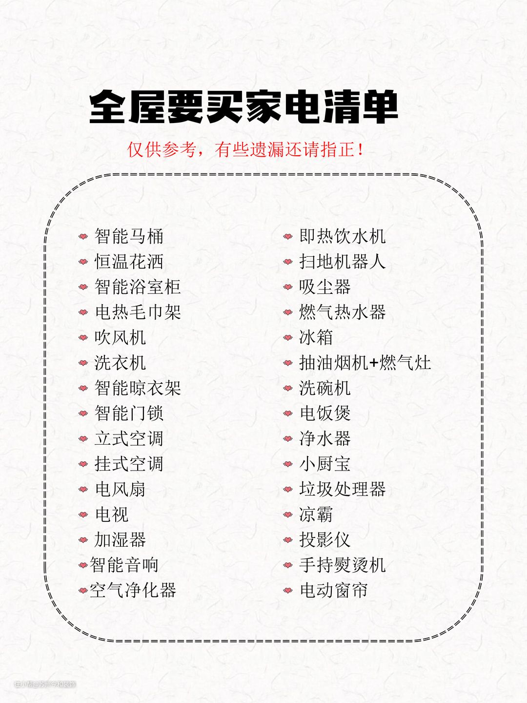 家具家电都是需要自己买的,小编为大家整理了一些家具家电,可以按照上面的买,觉得不需要的就不用买啦!
