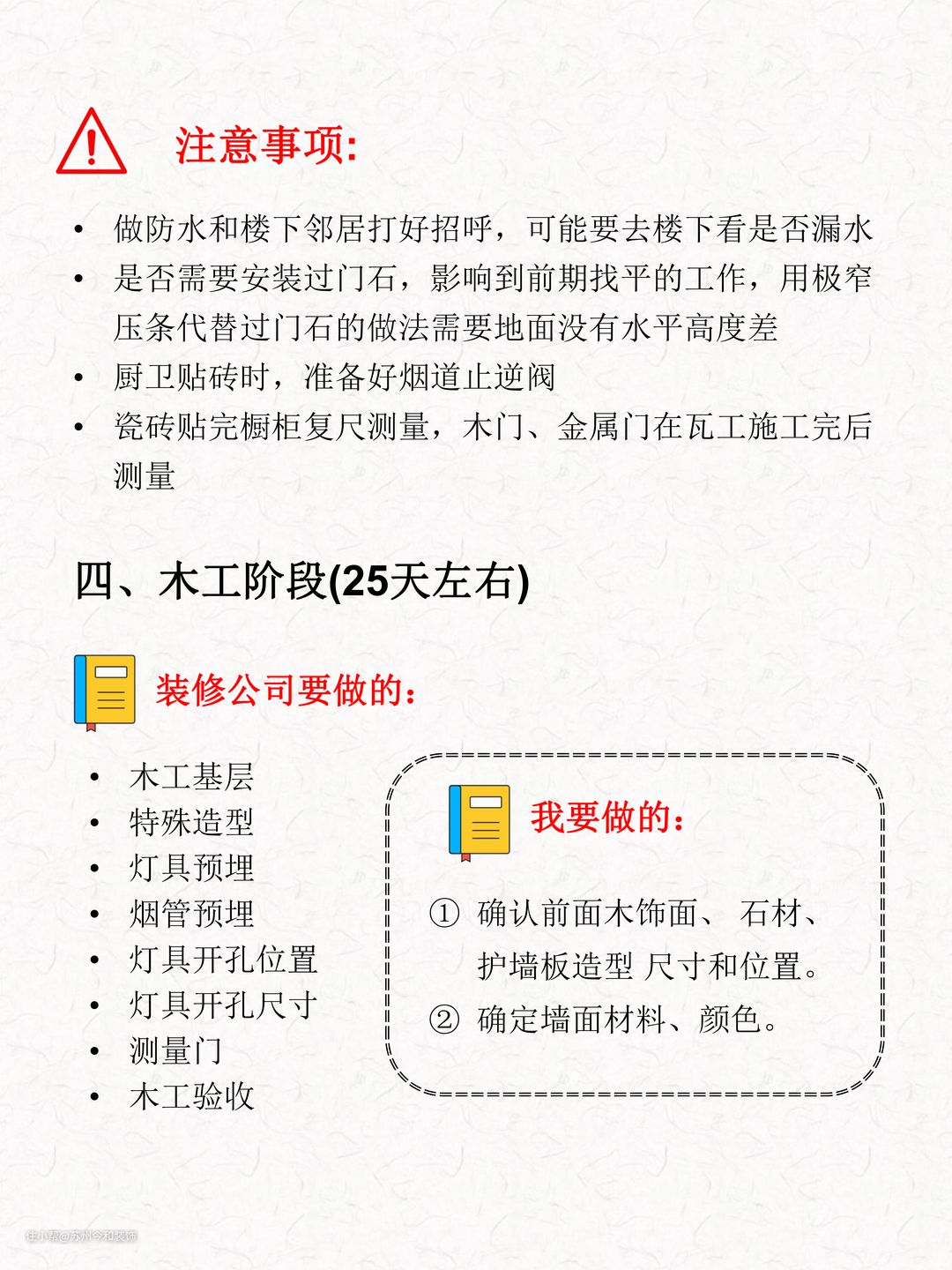“水电瓦木油”说的就是装修顺序,有些项目经理也会以“水电木瓦油”的装修顺序,当然这个也不影响,但在装修之前,我们需要注意的东西也有很多,办理装修许可证,然后告知邻居装修时间,免得打扰他们,闹得邻里之间的关系不愉快。