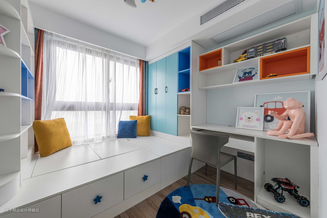 设计师将儿童房的风格、色彩拿捏的恰到好处,充满童趣之余又不会有过于儿童化的感觉,即使孩子长大一些不会嫌弃幼稚,客人来了也能睡。