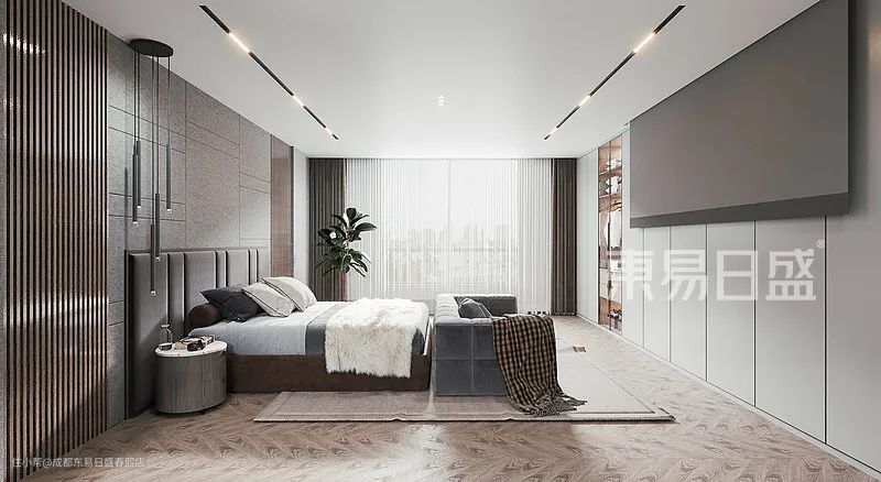 豪宅的卧室当然要是套房的设置,大篇幅的投影仪让在家看电影成为现实,一侧的休闲区域独立的卫生间极大地丰富的空间的功能,确保居者即使不出卧室的们,一切事情都可以有条不紊的进行下去,