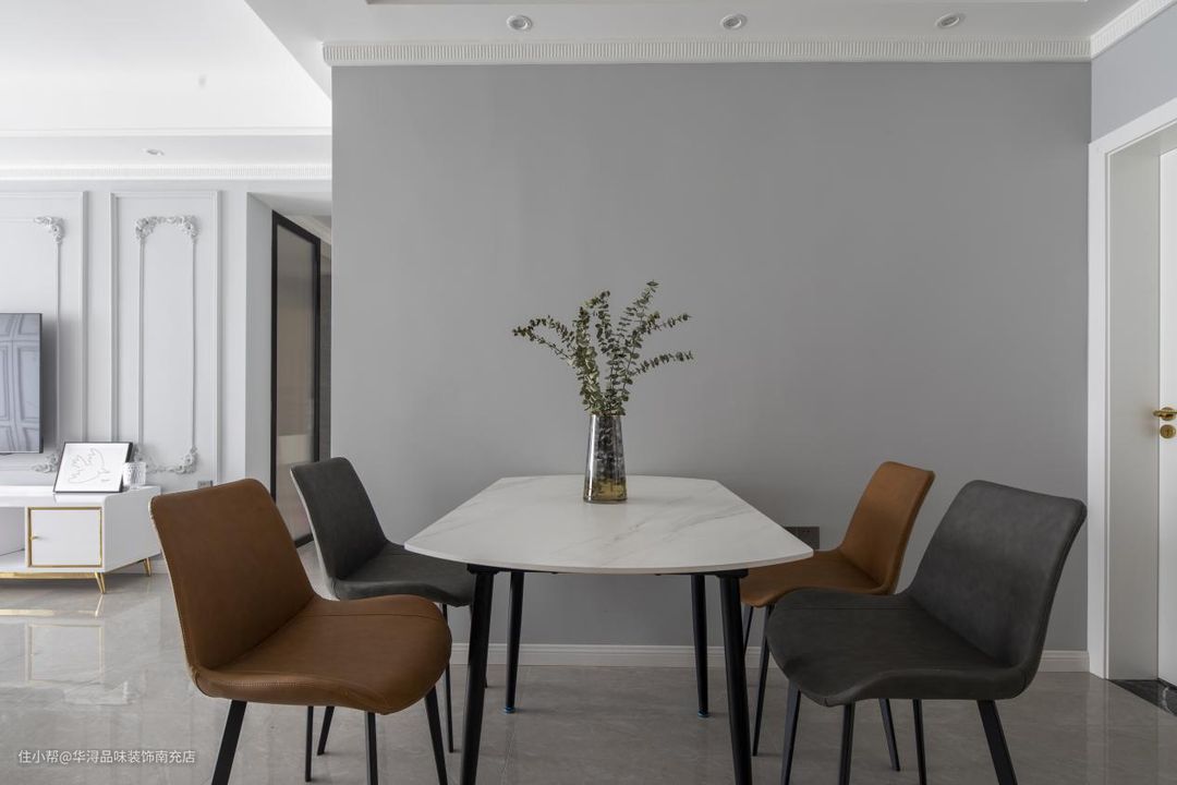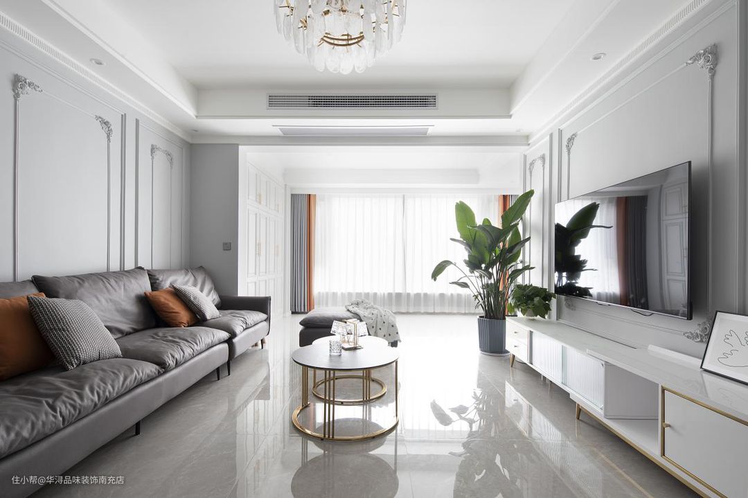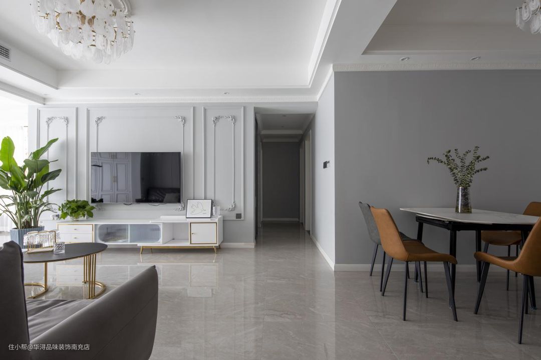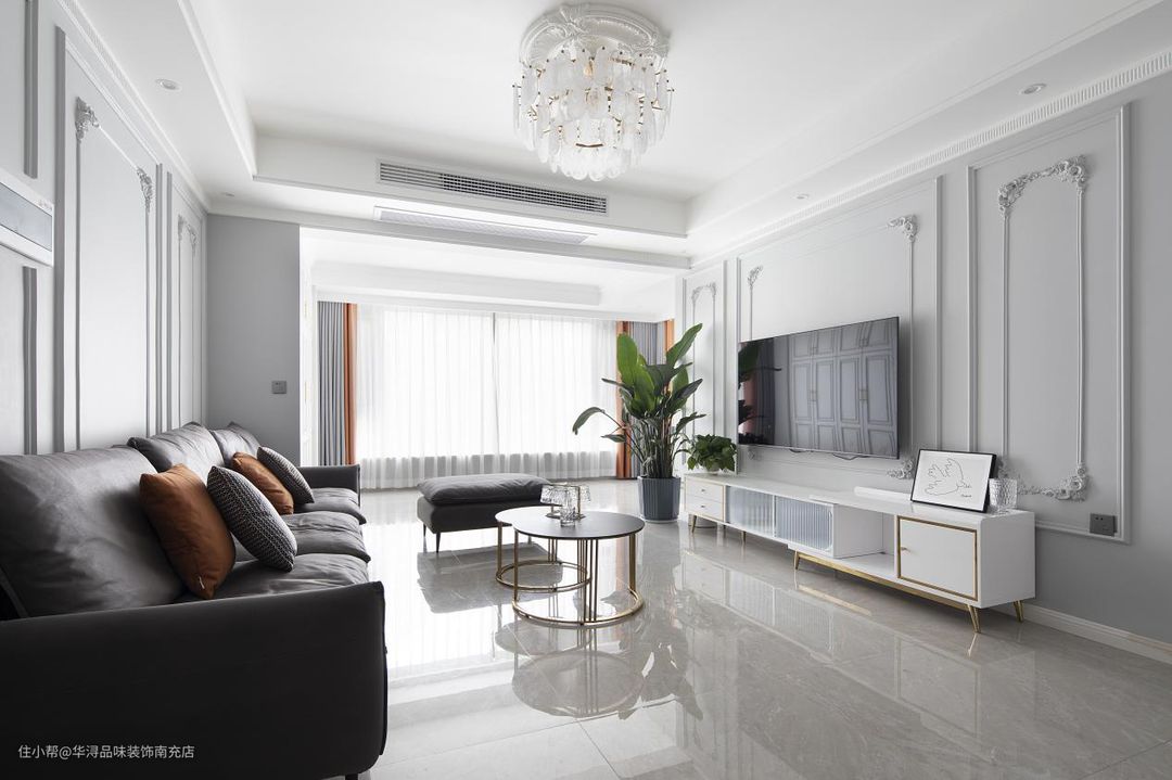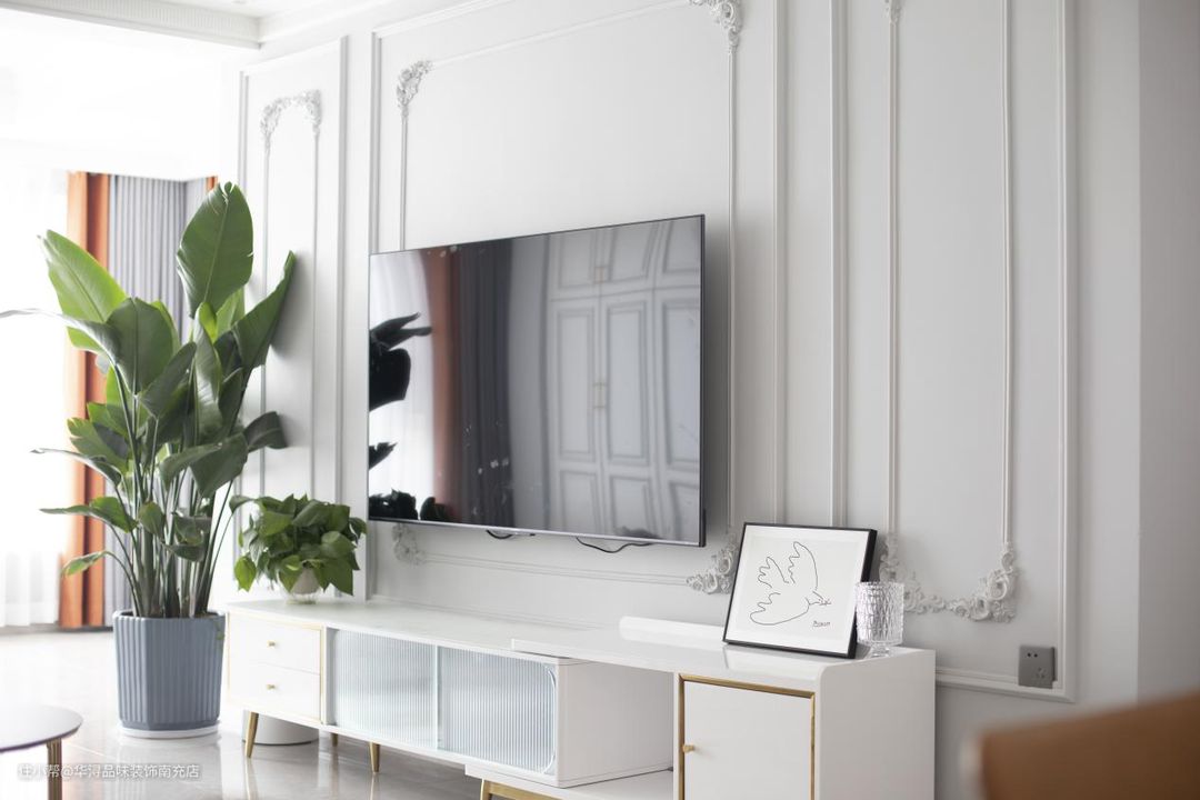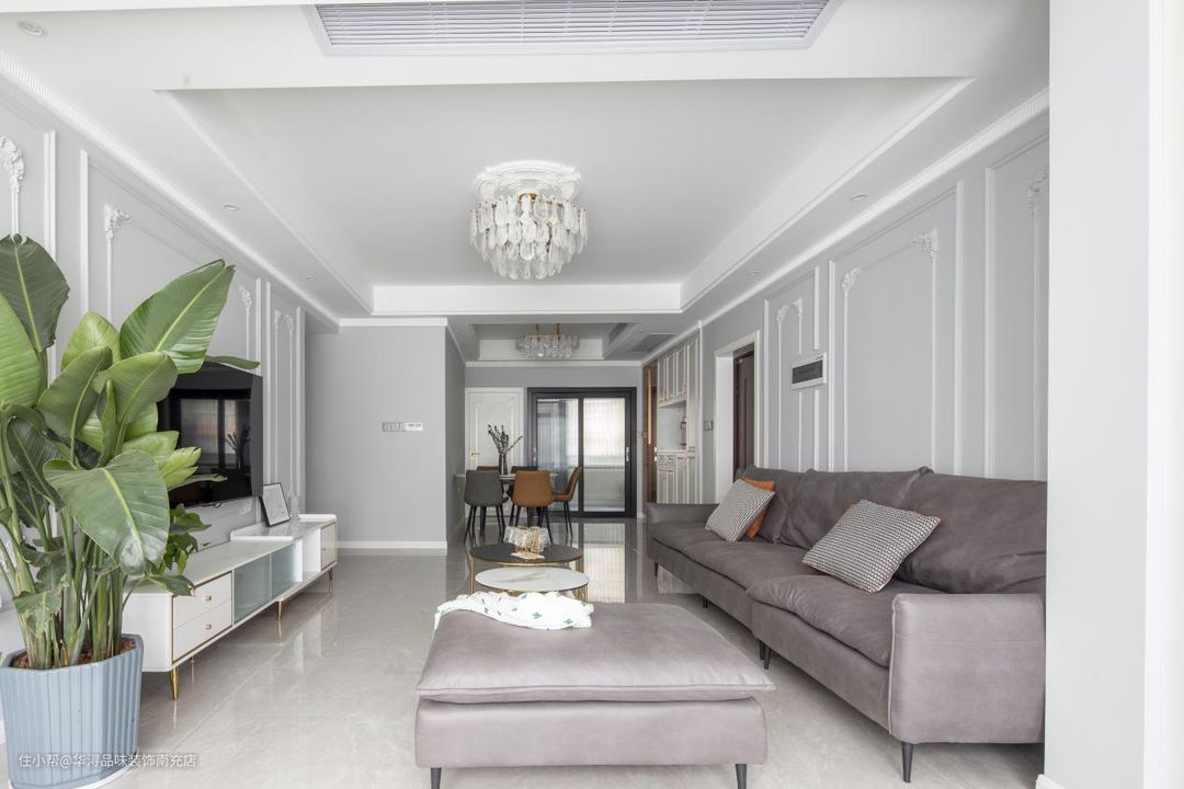 2. 女业主希望家里以大白墙为主,但又觉得大白墙太过单调,希望我们在不改变白色调的同时,又能让客厅独特些,所以设计师利用简单的石膏线来赋予空间线条感和层次感。