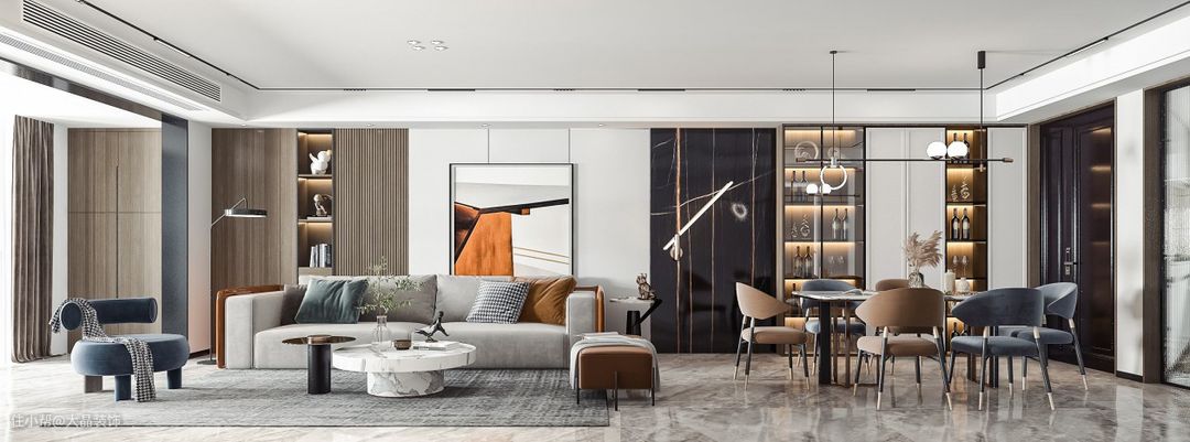 当然,如果确实要铺瓷砖。可以在部分地方用地毯来缓解冰冷感。地毯也是软装很重要的一部分,通常精装修房子如果不想大动干戈的话,也可以用地毯补救。