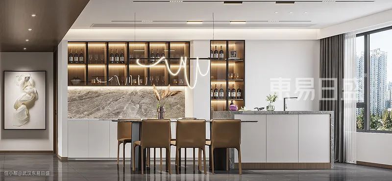 180㎡轻奢风格大平层,餐岛一体功能强大,黑白灰咖的精致生活