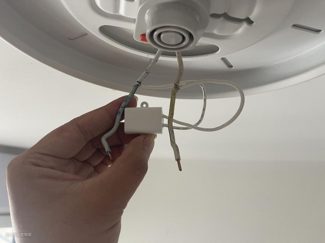 这里注意,其实也完全可以不破线,直接把单火适配器安装到灯线的接线柱即可。这里注意如果你一个开关控制的是一组灯,仅需在其中的一盏灯安装单火适配器即可,千万别忘了安装是一定要关闭空开。