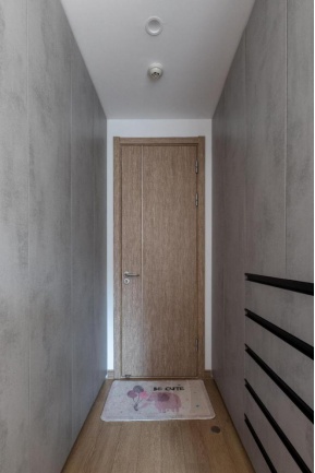 主卧内部,还设计了一个衣帽间。两侧墙体均做了到顶衣柜墙,灰色的质感更让人沉迷。打开门,里面是主卫。