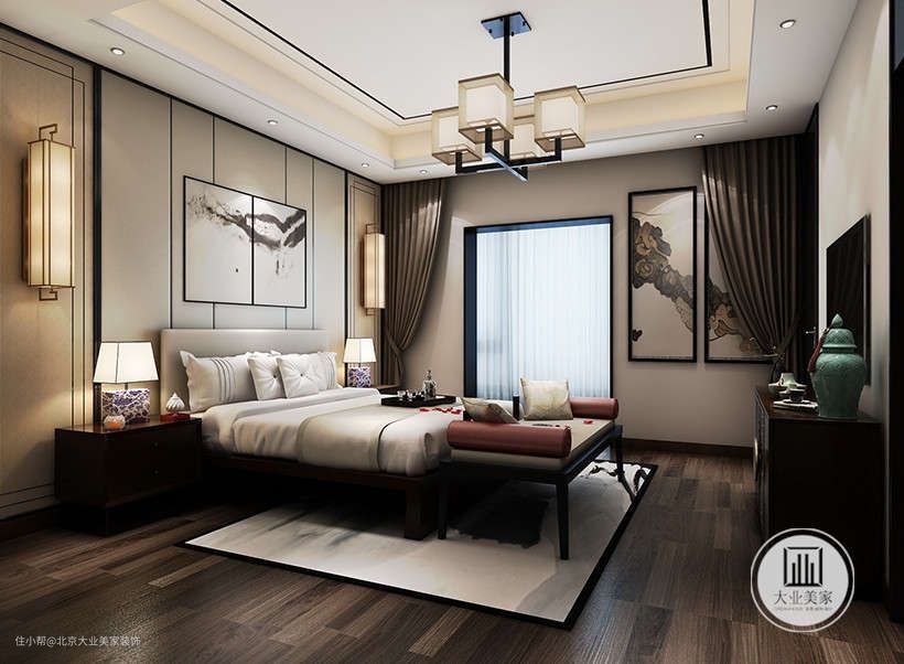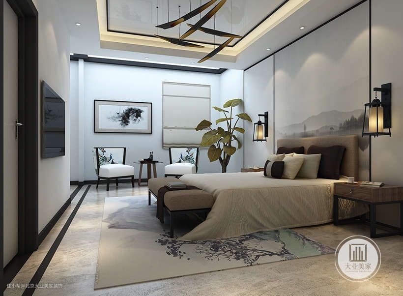 充满古典浪漫情怀的水墨画意境为整个空间营造了一种典雅及浪漫的氛围,远离喧嚣,归于平静的原始自然生活。