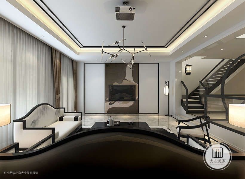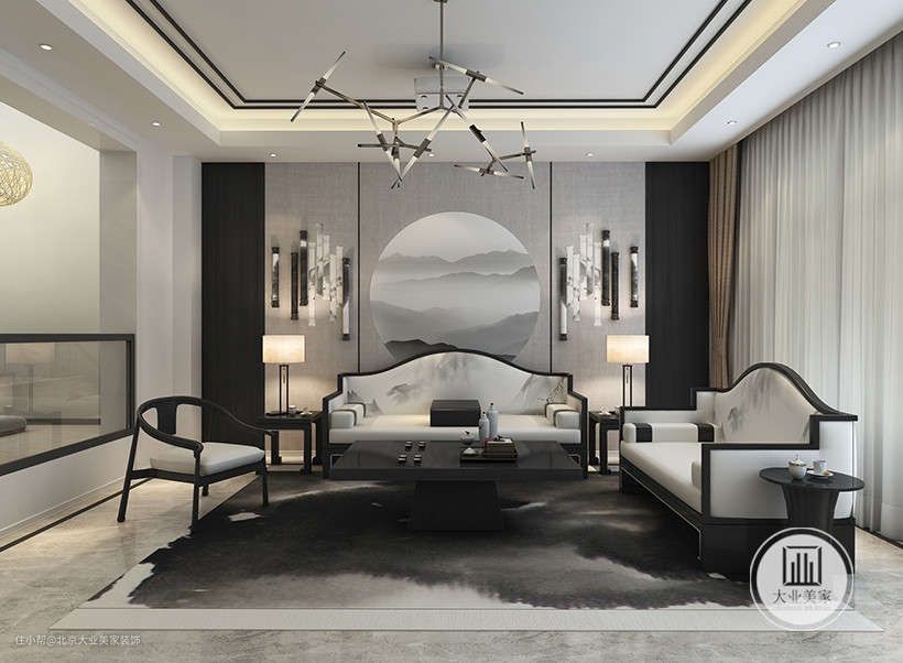 本案例采用黑白灰的水墨元素来理解新中式的精髓。作为低调的搭配色彩,黑白灰代表着睿智和理性。家居装饰中简约内敛的色彩搭配,令人耳目一心。