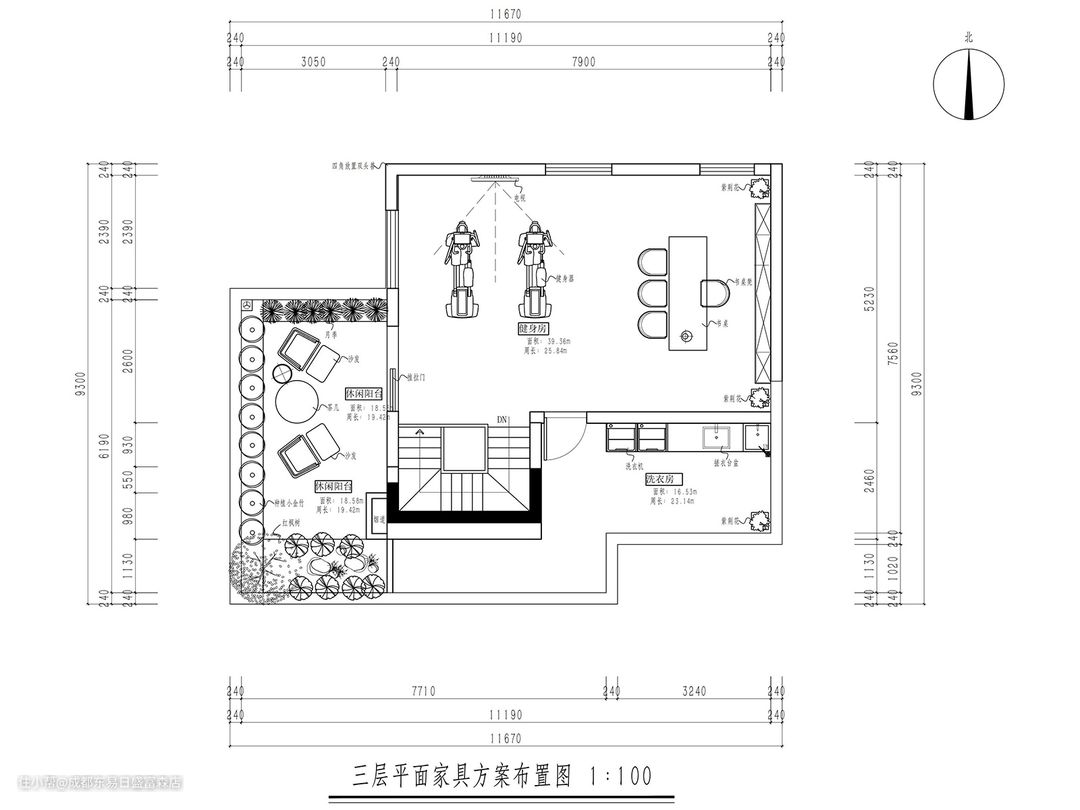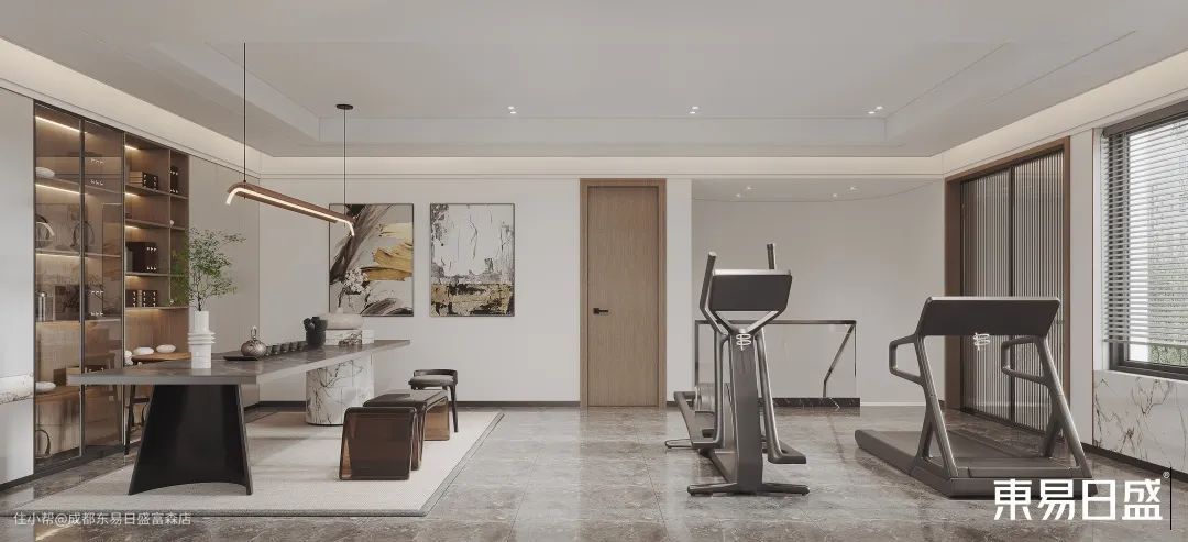 ③ 三层在设计师与业主的沟通后,对三层进行了搭建,为业主提供了一个健身房,以及花园,使业主在家也能够健康生活和感受自然。