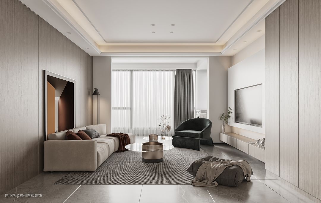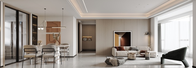 98㎡的现代简约风格,木饰面搭配的精致生活