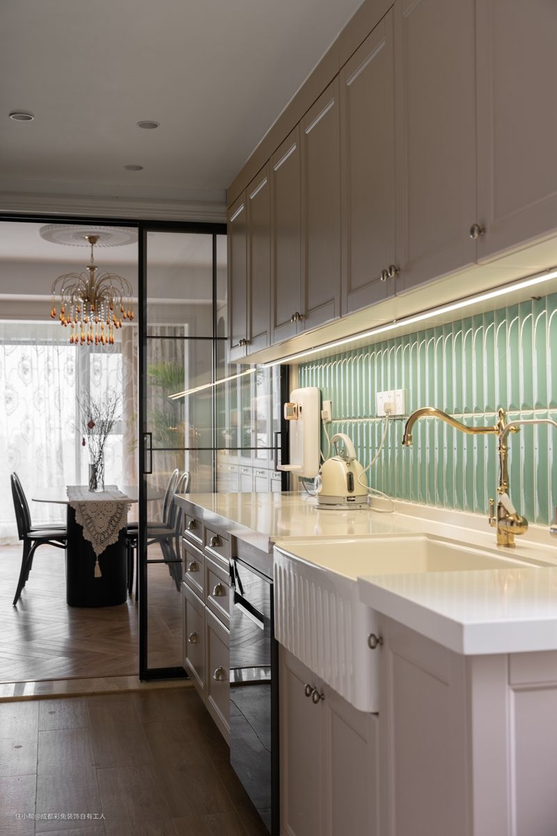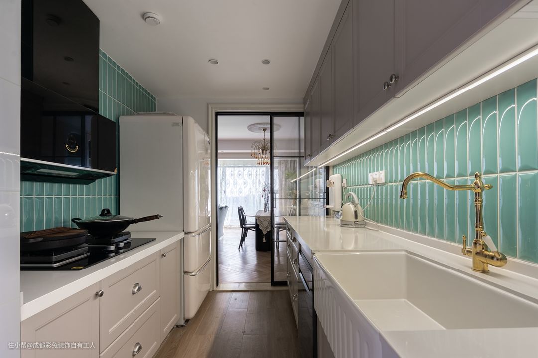 厨房空间早已不做排水不装地漏了,因为地面上很少会出现积水的情况,为了这么一点几率,去为地面找坡度、做防水、安装地漏是非常不值得的,大动干戈。