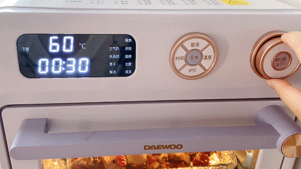开启大宇空气炸烤箱的“热风烤”模式,100度30分钟。