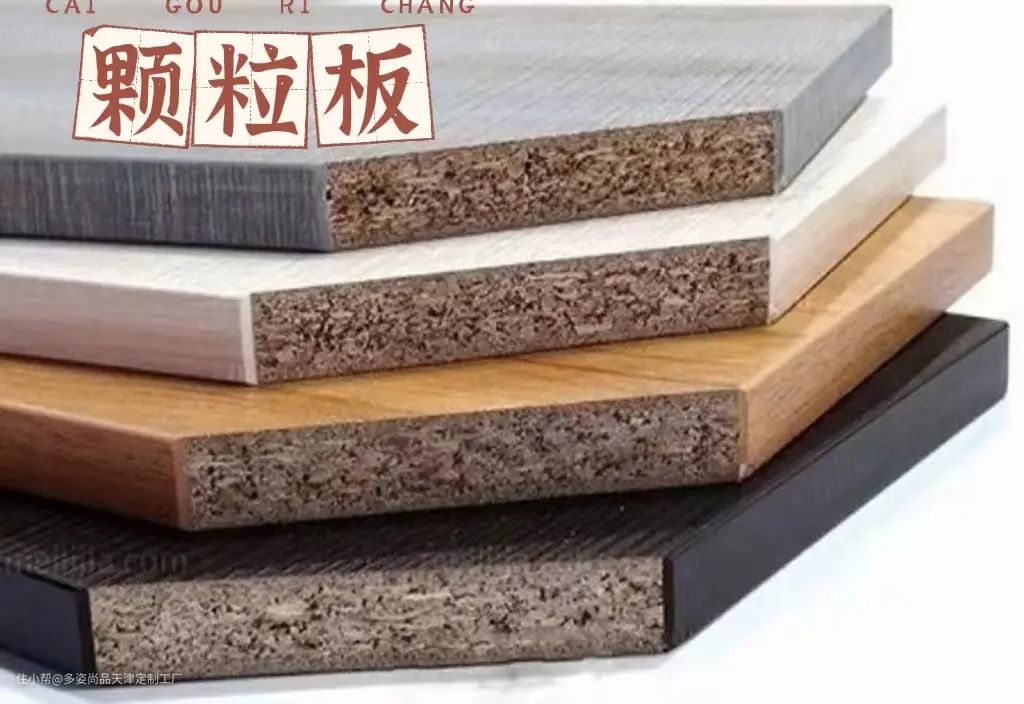 ※颗粒板:选用实木去掉树皮,保留树芯打碎添加胶水(好的板材会选用无醛生态胶)搅拌均勺经机器热压成型,双面贴膜。