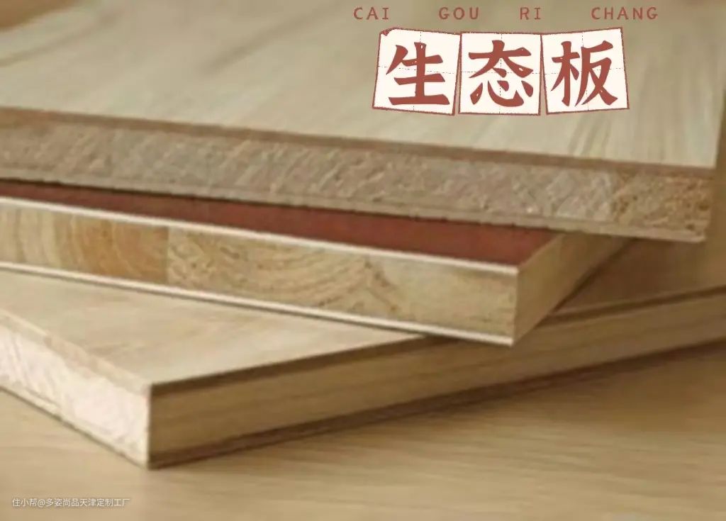 ※生态板:也称为木芯板,通俗点也就是前些年木工打家具常用的板材,现在改良升级后在外表贴上三聚氰胺饰面,里面基材都是些木方块或木条拼接而成,