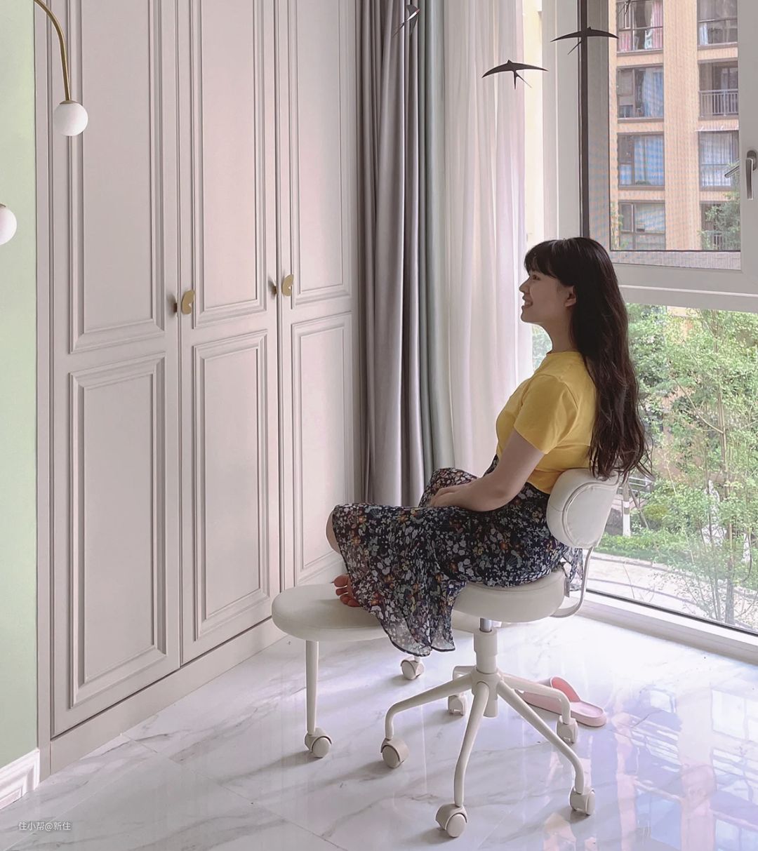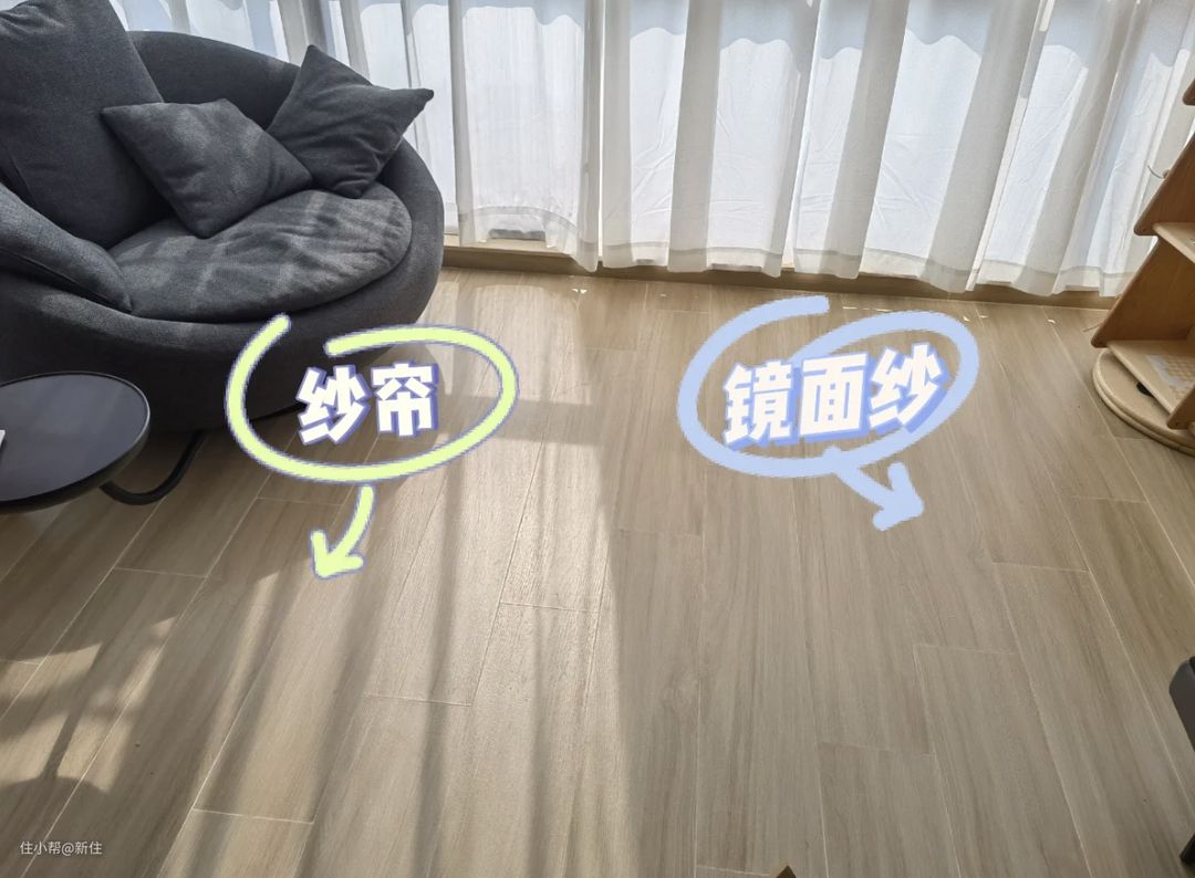 后来被朋友种草了镜面纱,上面有小方格的纹理,没有普通纱帘那么仙。