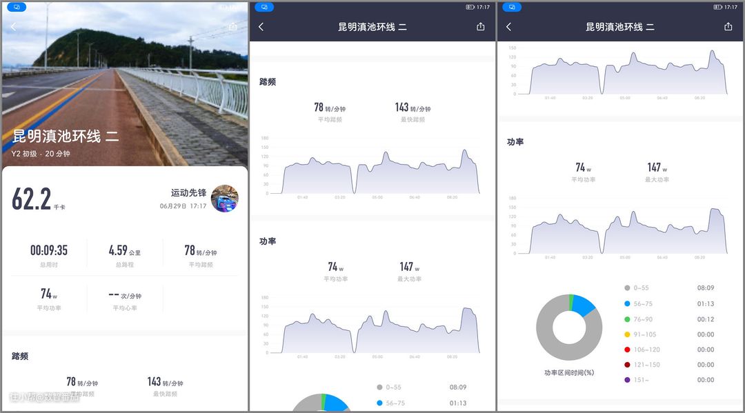 通过与yesoul客户端连接后,可实时监测动感单车的各种运动数据,功率、踏频频率、阻力、卡路里消耗、时速和里程,有了这些参数可以让我们更好的直观锻炼,了解到详细的运动信息,整个氛围营造的相当不错,至于心率,需要搭配心率带才能显示,改天得弄一个才行。