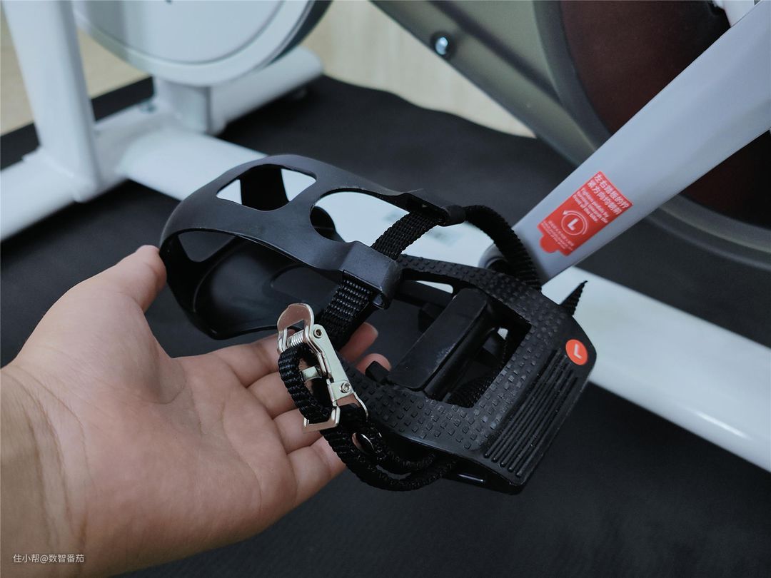安全性小细节也做的很到位,脚蹬为前包围设计,再加上可调节的固定绑带,适合大小脚尺度,同时也有效防止蹬踏的时候脚滑造成磕碰损伤,做的很到位。
