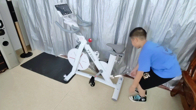 野小兽动感单车S1的空间占用仅0.5平方前面已经说过,这里可补充一点,其收纳移动也很方便,车子前底部设计的两个透明胶质滑轮,日常移动很方便,卸力也不错,我家调皮蛋自己都能轻抬起来移来移去的,很轻松,运动完放到角落里,仅占用一点点小空间,完全不影响客厅美观,反而还觉得是一件很不错的艺术摆件。
